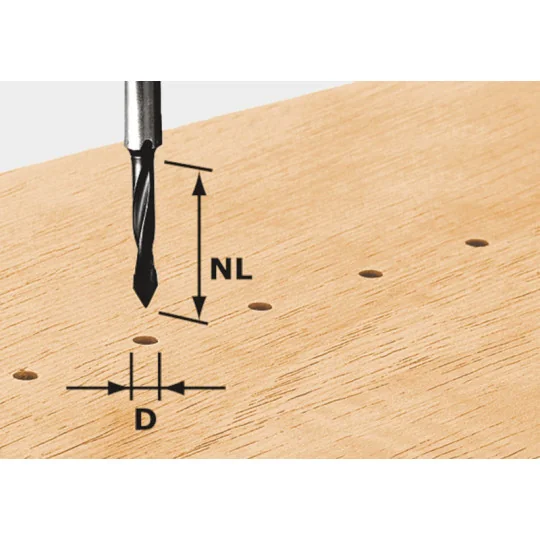 - Wiertła przelotowe do wiercenia rzędów otworów, z długim kłem HW do frezowania przelotowego płyt